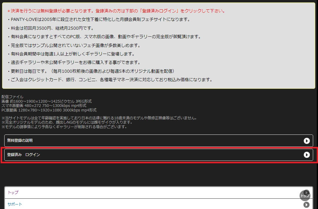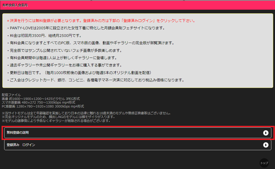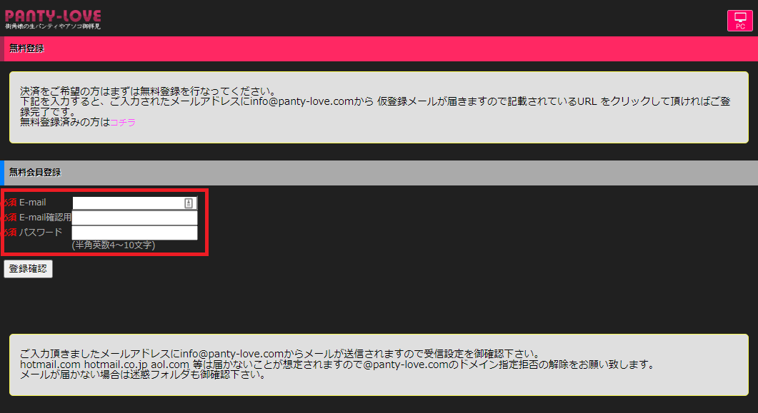 ここではPANTY-LOVE(パンティラブ)への入会方法の手順を画像を使ってわかりやすくまとめています。