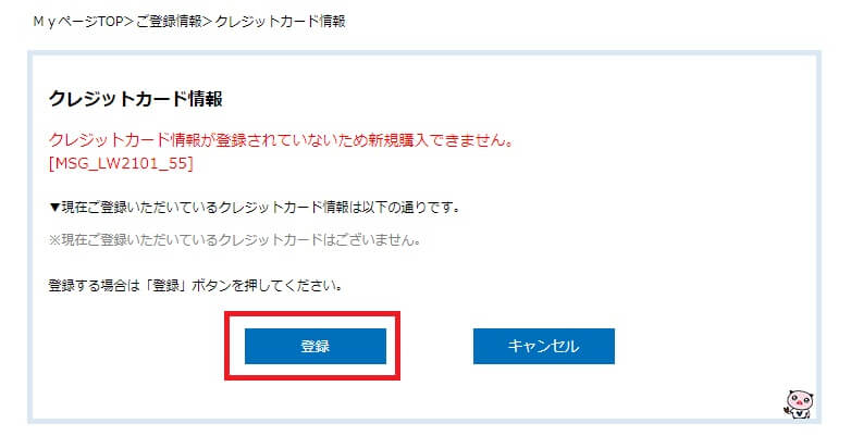 クレジットカードをご選択した場合は事前にクレジットカードの登録が必要となります(VISA・MASTER)