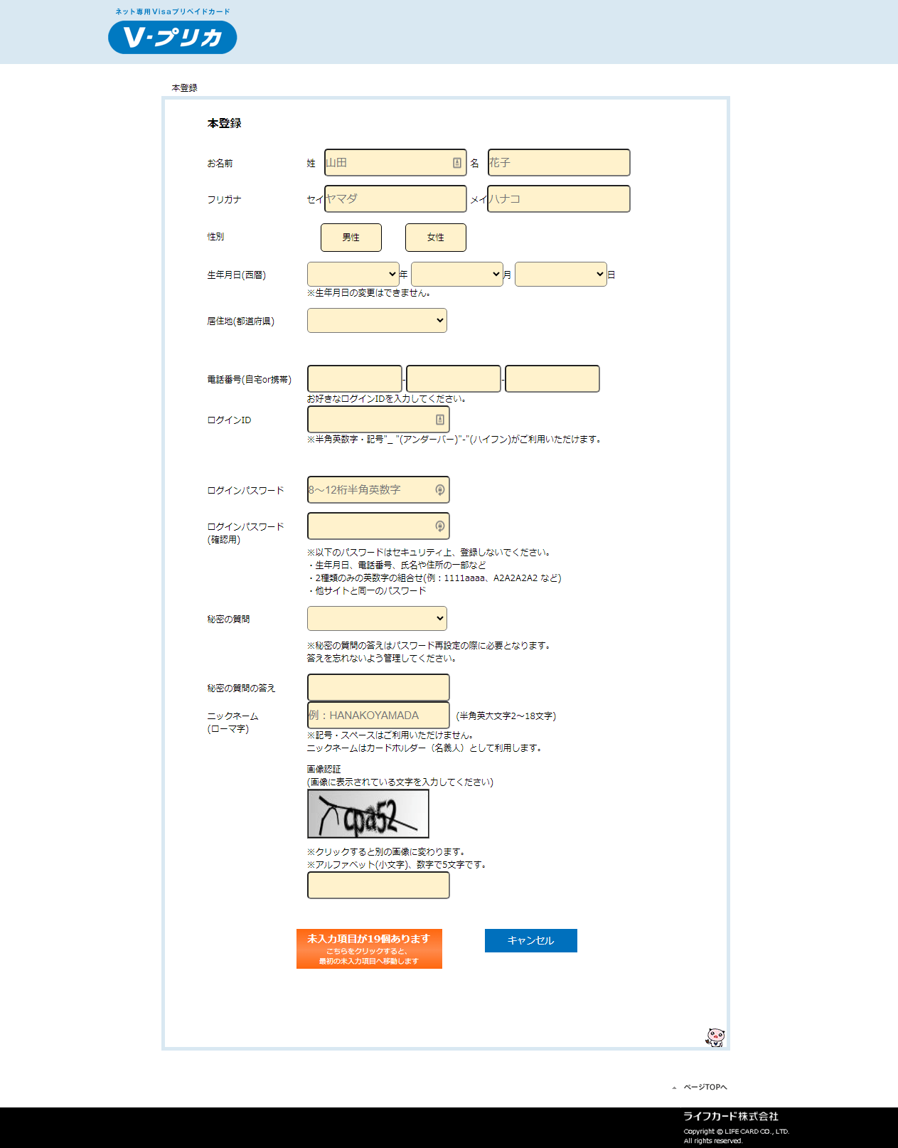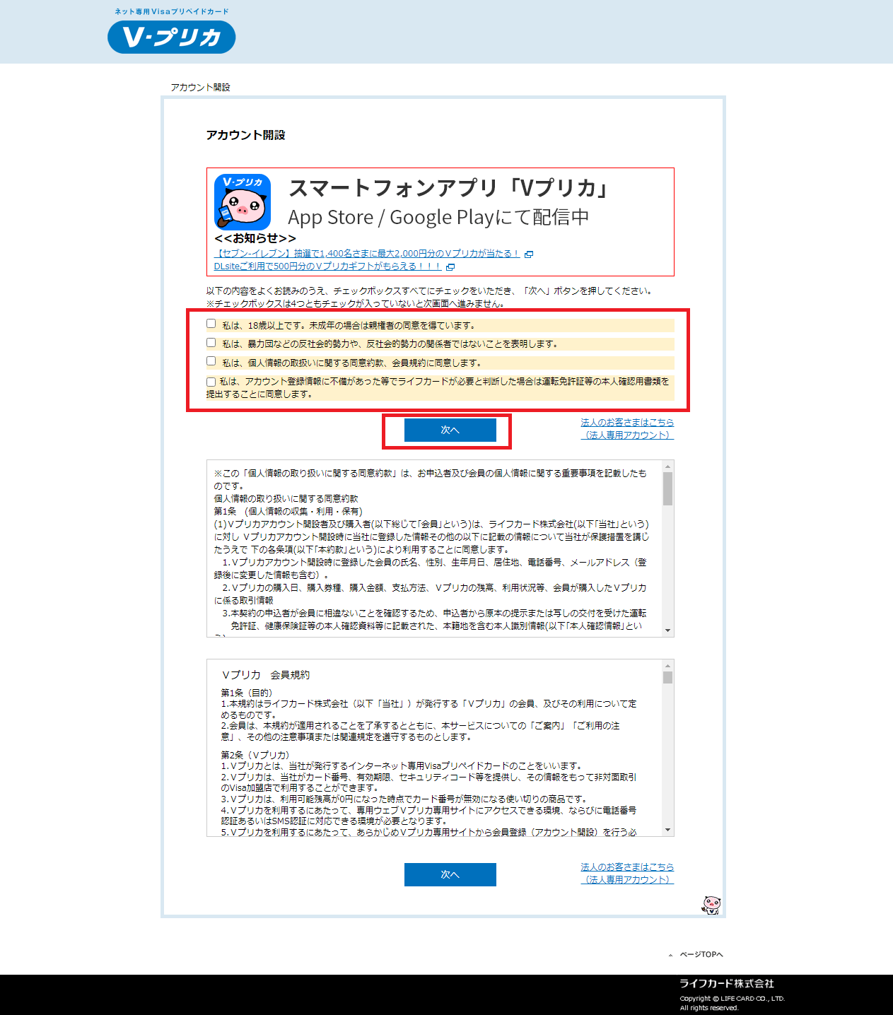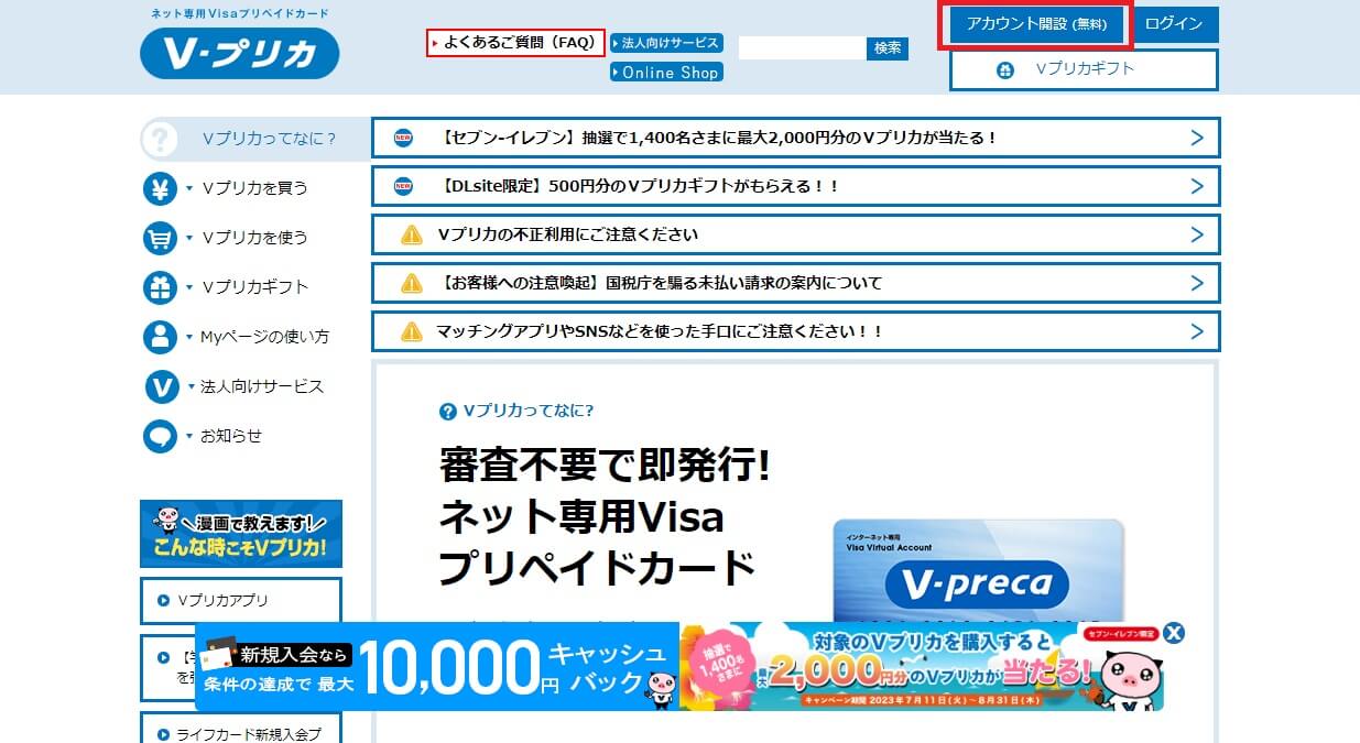 Vプリカを利用するには無料のアカウントを開設する必要があります。